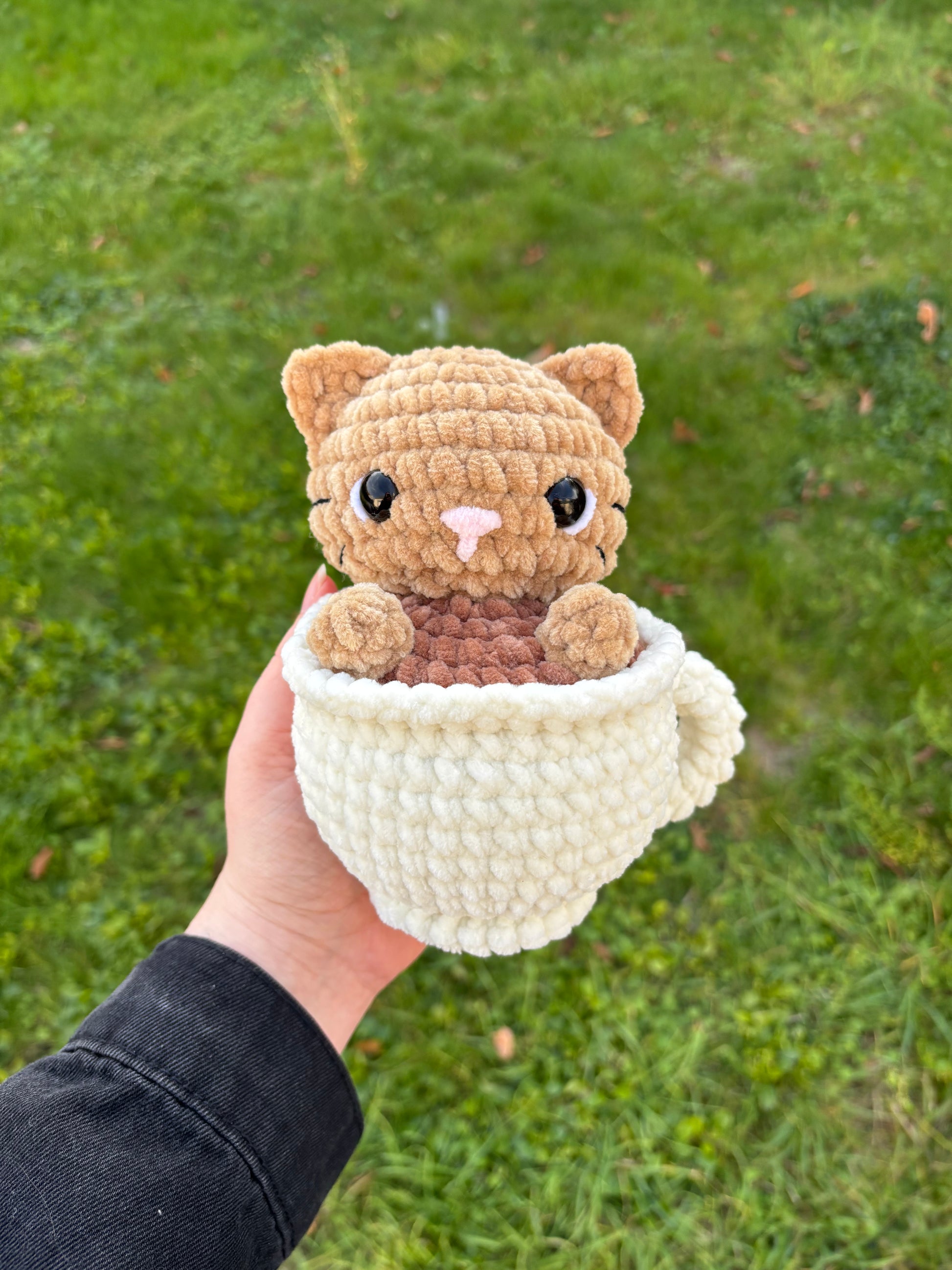 Peluche chat-ppuccino toute douce et moelleuse, prête à être adoptée pour de longues séances de câlins🤗