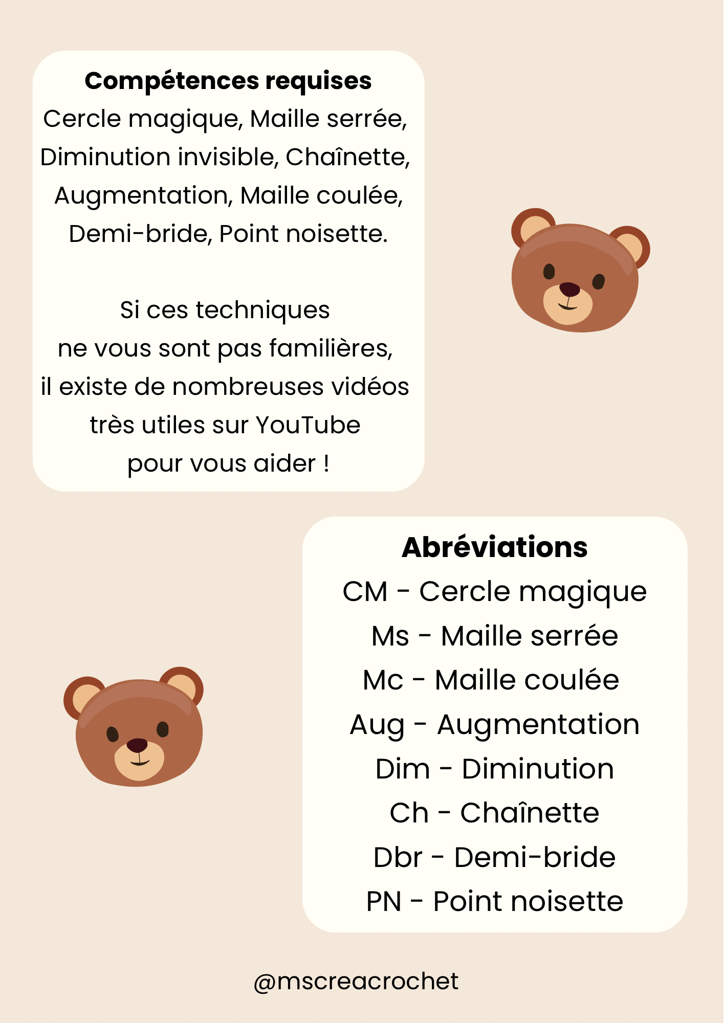 Attention : les termes et connaissances de base du crochet sont fortement recommandés pour la réalisation de ce modèle.